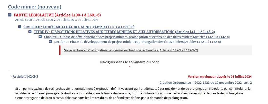 Au-delà du 22 octobre 2025, la validité des PER est prorogée de droit sans formalité, dans la limite de deux ans en attendant la décision définitive des services instructeurs de l’État, conformément à l’Article L142-2-2 du Code minier :