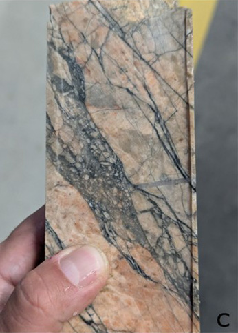 - Tous les sondages publiés ont intercepté avec succès le système minéralisé, comme en témoignent les veines de quartz, la minéralisation sulfurée polymétallique, l’altération hydrothermale étendue et la présence locale d’or visible.
